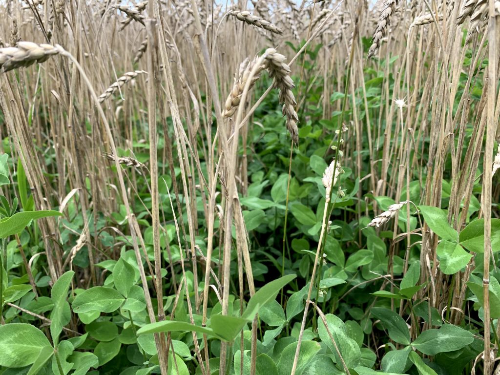 Red clover growing as an understory cover crop here in winter wheat at WICST (photo credit: Gregg Sanford)